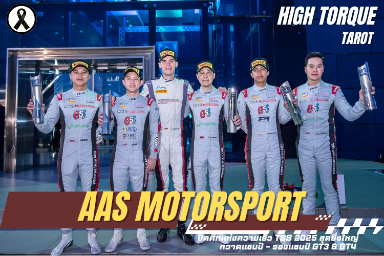 บทสรุปเกมตัดสินแชมป์ประจำปีศึกรถยนต์ทางเรียบระดับภูมิภาคเอเชียตะวันออกเฉียงใต้ รายการ “TSS The Super Series by B-Quik 2025” ที่เดินทางมาถึง Event 5 ใน (Race 9 & 10) ส่งท้ายความันส์ที่ สนามช้าง อินเตอร์เนชั่นแนล เซอร์กิต, บุรีรัมย์ เมื่อวันที่ 31 ตุลาคม – 2 พฤศจิกายนที่ผ่านมา โดยทีม AAS Motorsport ส่งทัพรถแข่งทั้ง 3 คัน ลงแข่งขันใน 2 รุ่นหลัก ได้แก่ รุ่น Supercar GT3 หมายเลข 18 ขับโดย “เต๊อะ วุฒิกร อินทรภูวศักดิ์” ที่ได้ทีมเมทชาวเยอรมัน “ลอริน ไฮน์ริช” (Laurin Heinrich) กลับมาร่วมแข่งในสนามสุดท้ายภายใต้ชื่อทีม AAS Motorsport by EBM โดยใช้รถแข่ง Porsche 911 GT3 R ส่วนอีกรุ่น Supercar GT4 ที่ส่ง 2 รถแข่งลงสู้ศึก กับรถหมายเลข 1 ขับโดย “บูม กันตธีร์ กุศิริ” แท็กทีมกับ “มิกกี้ คมิก กรรณสูต” และรถหมายเลข 99 ขับโดย “ปุ๊ เดชาธร ภู่อัครวุฒิ” จับคู่กับ “โอม ฐนภัทร สุทธิสว่าง” ด้วยรถแข่ง Porsche 718 Cayman GT4 RS Clubsport