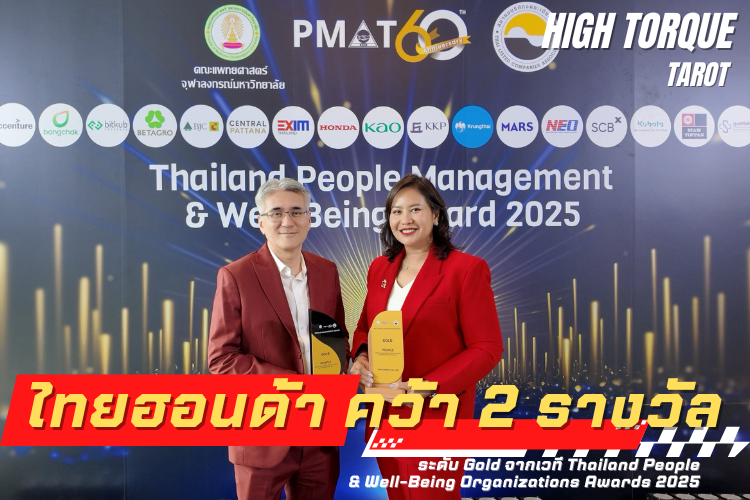 บริษัท ไทยฮอนด้า จำกัด มุ่งมั่นและให้ความสำคัญกั บการบริหารและพัฒนาทรัพยากรบุ คคล ควบคู่การส่งเสริมคุณภาพชีวิ ตของพนักงานอย่างรอบด้าน พร้อมตอกย้ำความสำเร็จด้ วยการคว้า 2 รางวัลระดับ Gold จากสมาคมการจัดการงานบุคคลแห่ งประเทศไทย (PMAT) ร่วมกับ คณะแพทยศาสตร์ จุฬาลงกรณ์มหาวิทยาลัย และ สมาคมบริษัทจดทะเบียนไทย (TLCA) ด้วยรางวัล Thailand People & Well-Being Organizations Awards ประจำปี 2025 เมื่อวันที่ 18 กุมภาพันธ์ 2569 ณ ห้องนภาลัย บอลรูม โรงแรมดุสิตธานี กรุงเทพฯ โดยมี คุณสุคติ สรรพวัฒน์ ผู้บริหารกลุ่มงานการบริหารองค์ กร และ คุณมนสิชา สังข์สุวรรณ ผู้จัดการทั่วไปสายงานกลยุทธ์ ทรัพยากรบุคคลเป็นผู้เข้ารั บรางวัล