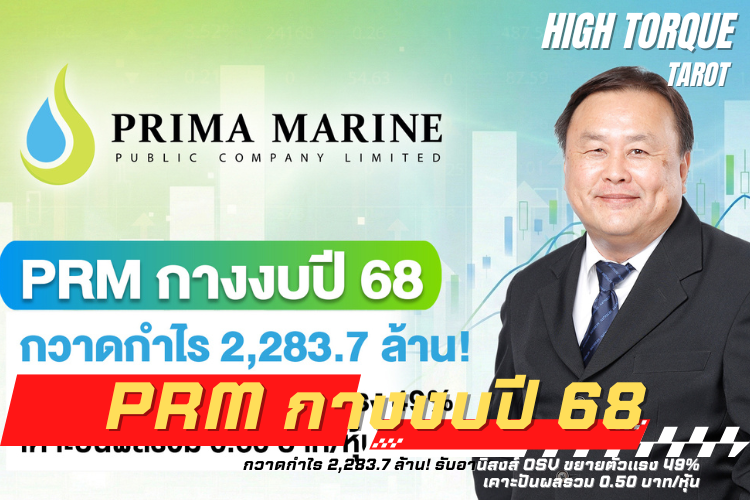 บมจ.พริมา มารีน (PRM) ผู้ให้บริการขนส่งและจัดเก็บ รวมถึงสนับสนุนงานสำรวจและผลิตในอุตสาหกรรมปิโตรเลียมทางทะเลชั้นนำของไทย เผยผลประกอบการปี 2568 โดยมีรายได้รวม 8,746.5 ล้านบาท และกำไรสุทธิ 2,283.7 ล้านบาท เติบโตเพิ่มขึ้น 1.5% จากปีก่อนหน้า ชูธุรกิจ OSV โตทะยาน บอร์ดไฟเขียวจ่ายปันผลรวม 0.50 บาท/หุ้น เตรียมขึ้นเครื่องหมาย XD 6 พ.ค. นี้