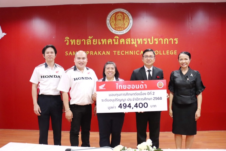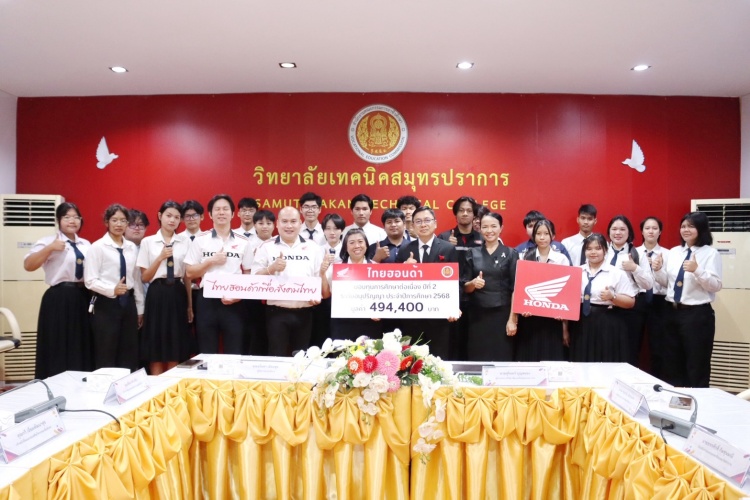 บประถมศึกษา ภายใต้โครงการ “ไทยฮอนด้า เพื่อน้อง” ให้แก่สถานศึ กษาในระดับประถมศึกษาจำนวน 4 แห่ง แห่งละ 50,000 บาท รวมมูลค่า 200,000 บาท ได้แก่ โรงเรียนวัดทิพพาวาส โรงเรียนวัดบึงบัว โรงเรียนวัดอู่ตะเภา และโรงเรียนอิสลามลำไทร โดยมี คณะครูและตัวแทนนักเรี ยนจากโรงเรียนที่ได้รับทุนเป็ นผู้รับมอบ เมื่อวันที่ 29 มกราคม 2569 ณ บริษัท ไทยฮอนด้า จำกัด (สำนักงานใหญ่) - ระดับอาชีวศึกษา: มอบทุนการศึกษาระดับอาชีวศึกษา จำนวน 40 ทุน รวมมูลค่า 494,400 บาท โดยมี นายสุรินทร์ บุญสนอง ผู้อำนวยการวิทยาลัยเทคนิคสมุ